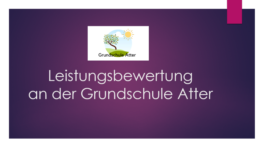Hier finden Sie eine Präsentation zur Leistungsbewertung an der GS Atter in den Klassen 3 und 4. Sprechen Sie uns gerne an, wenn Sie Fragen hierzu haben.